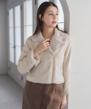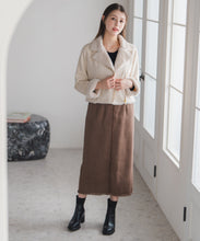 滑らかな質感が特徴のスエード調素材を使用したライダースジャケット。