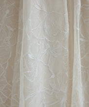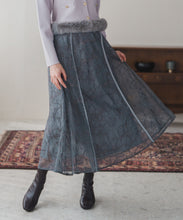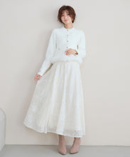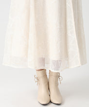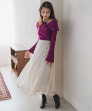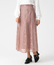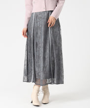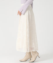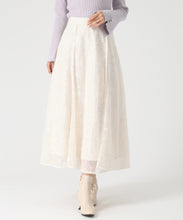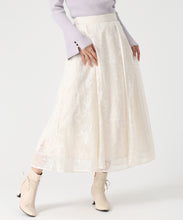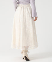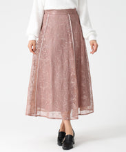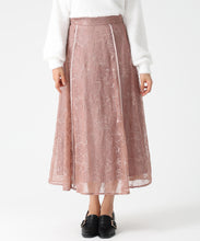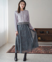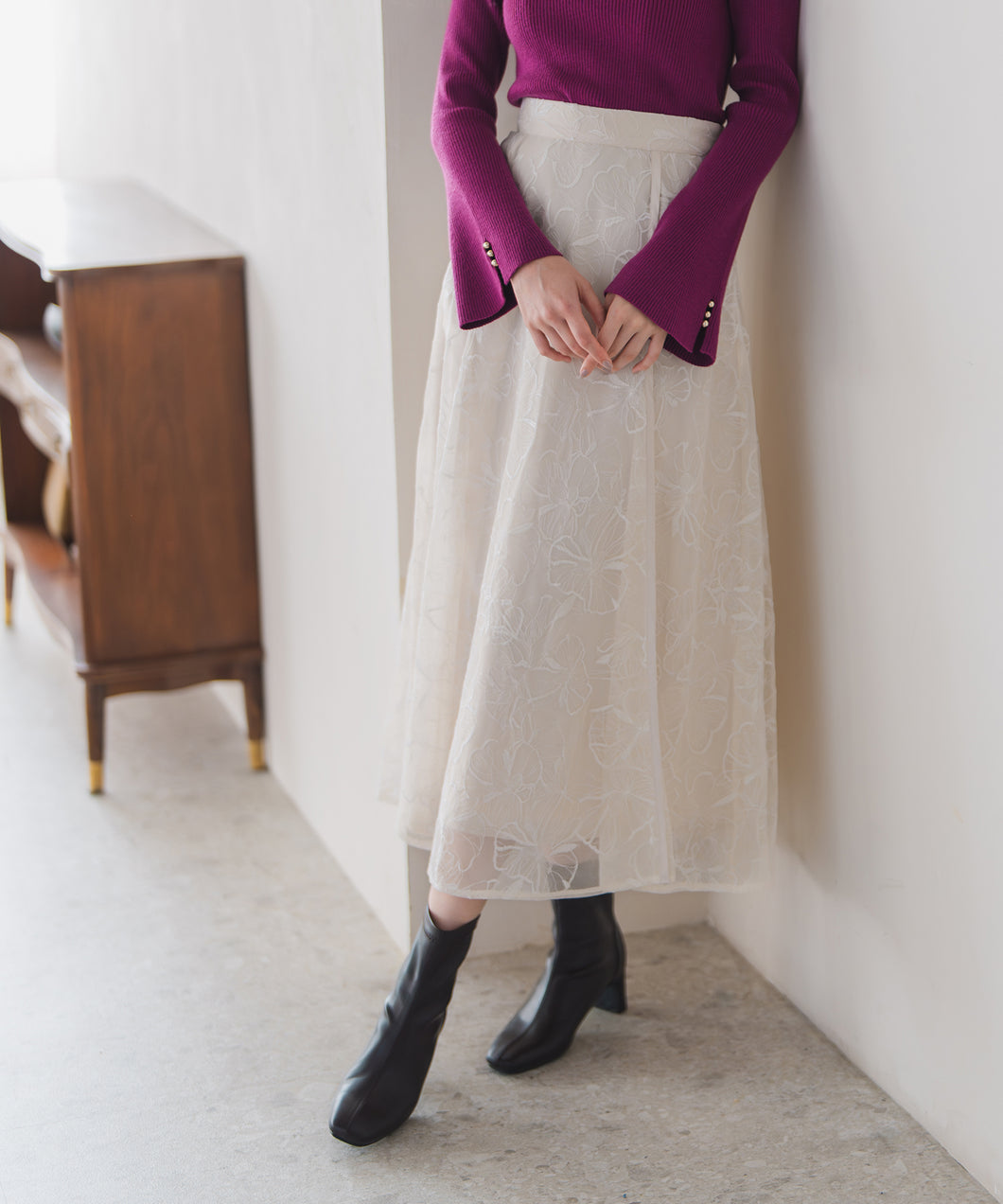 シアー感のある生地にラメ刺しゅうをあしらった華やかなパイピングスカート。