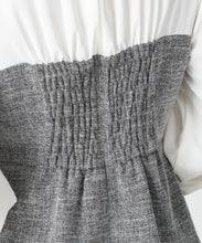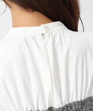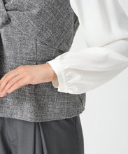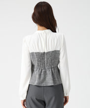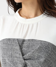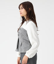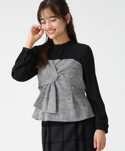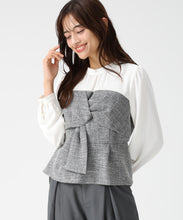 ツイード生地をドッキングした華やかなペプラムブラウス。
