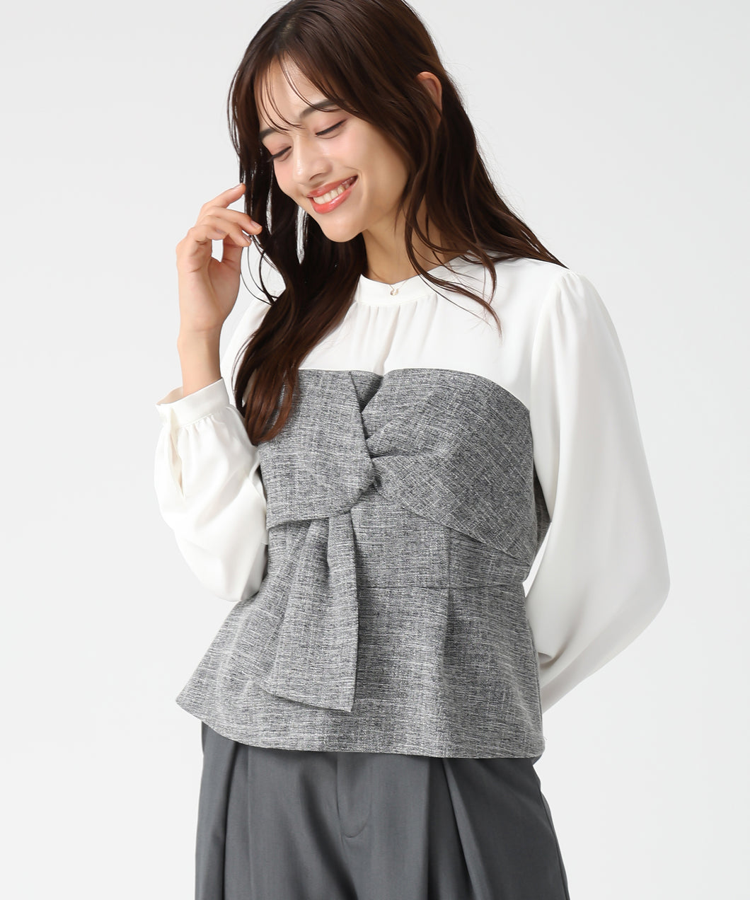 【WEB限定予約販売/11月上旬発売予定】ツイードドッキングねじりペプラムブラウス/MM548109