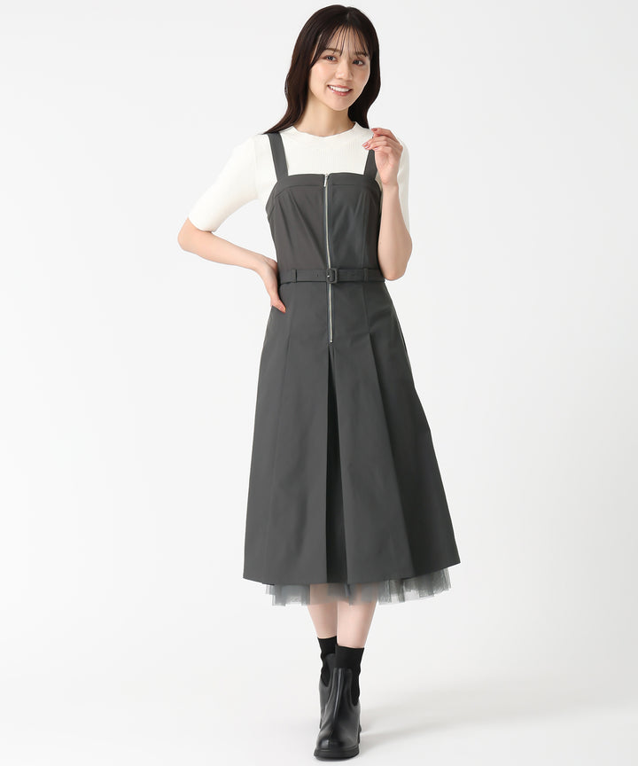ショルダー部分のリボンがガーリーなアクセントになるジャンスカ。