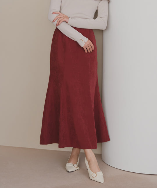 ひらりと裾が揺れるマーメイドシルエットで、エレガントなムードを演出。