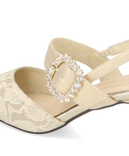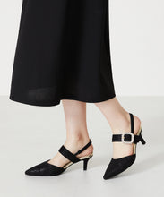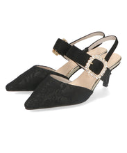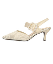 ビジューバックルのベルトデザインが女性心をくすぐるエレガントなパンプス。