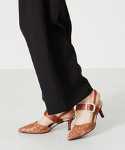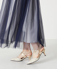太めのベルト×華奢なバックストラップの対照的な組み合わせで足元のシルエットを