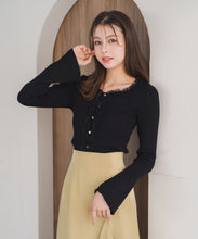 レースフリルデザインが華やかに魅せるニットトップス。