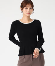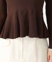 ラメの配色が上品なアクセントを添えるペプラムニット。