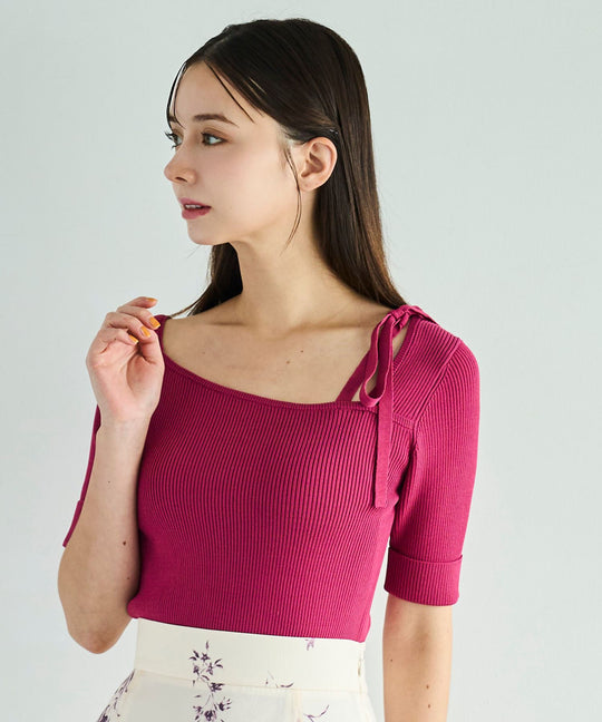 縦に並んだリボンがスタイリングのアクセントになるニット。