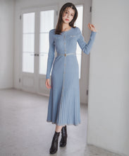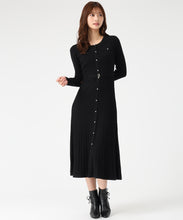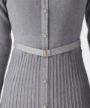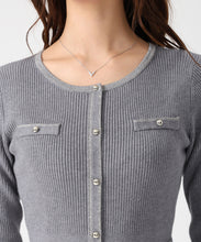 縦に流れるリブ編みがスタイルアップを叶え、メタル調ボタンが上品な華やぎを添えます。