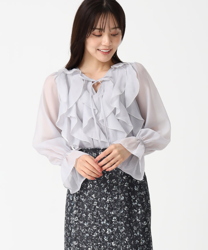 一部店舗限定 シャーリングペプラムブラウス/TT558102