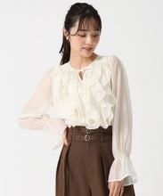 ふんわりとしたラッフルフリルが可愛らしいブラウス。