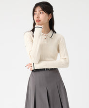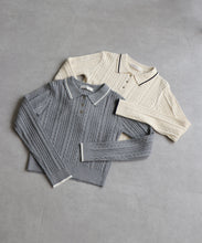 アイボリーとグレーは、襟や袖口にラインを入れメリハリをプラス。