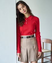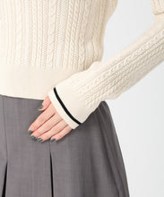 凹凸のあるケーブル編みがシーズンムードを演出するニット。