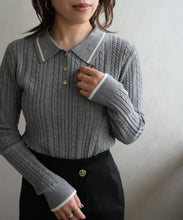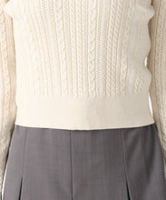 細かいケーブル編とアイレットをミックスした編地でカジュアルになりすぎずフェミニンにも着られる1着です。